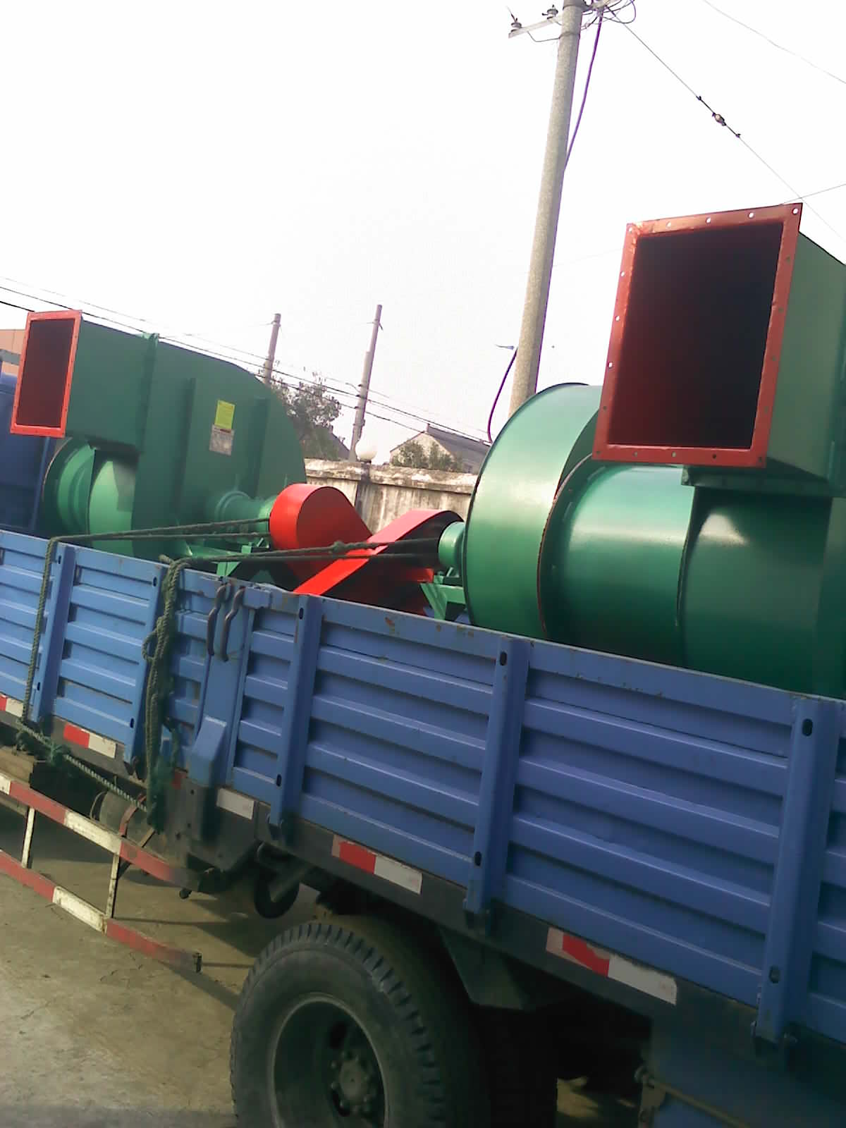 熱烈祝賀泰興市德坤環(huán)保機械有限公司為國內(nèi)某空氣凈化設(shè)備配套風(fēng)機,圖為裝車發(fā)貨圖。